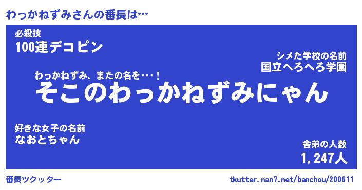 | ピコ太郎風あだ名 | 『ワコ史郎』『ピワ二郎』『ワッ四郎』 |