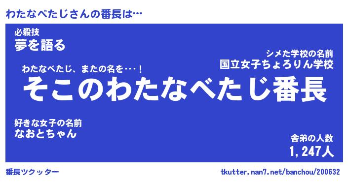| 意味不明あだ名 | 『ペロリンわたなべたじ』 |