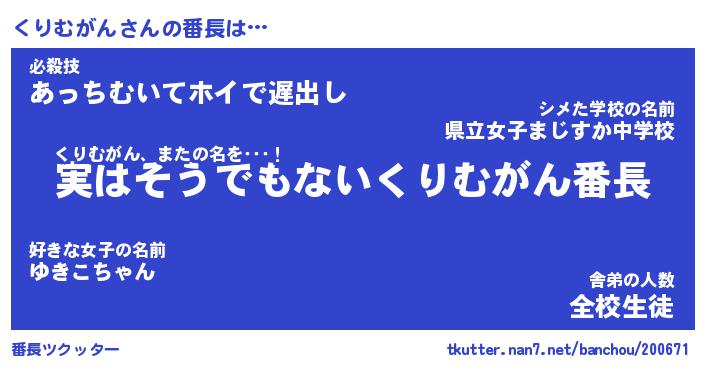 | 肩書あだ名 | 『くりむがんCEO』『くりむがん総理大臣』 |