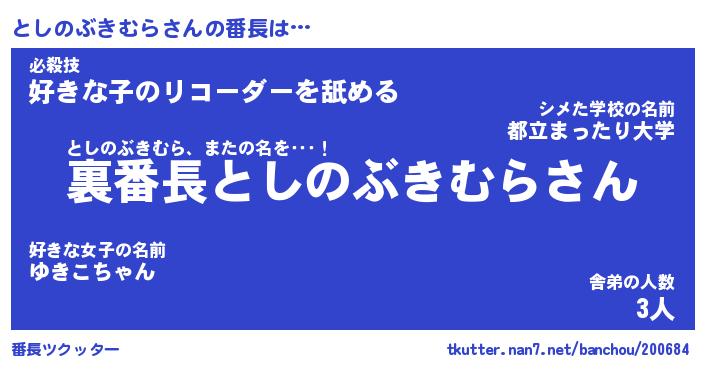 | ヘコむあだ名 | 『としにー』『なまこ酢』『としお』 |