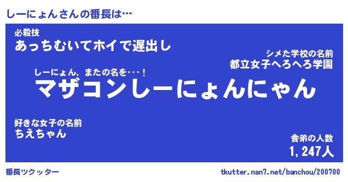 | 恥ずかしいあだ名 | 『プリティーしーにょん』『しーっちょ』 |