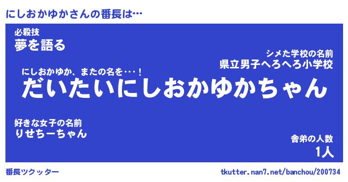 | 恥ずかしいあだ名 | 『プリティーにしおかゆか』『にしっちょ』 |