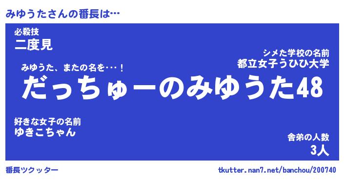 | 肩書あだ名 | 『みゆうた社長令嬢』『みゆうた国家主席』 |
