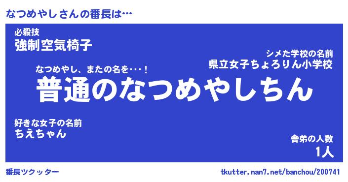 | ポケモン風あだ名 | 『ナツチュウ』『ナツメダネ』 |