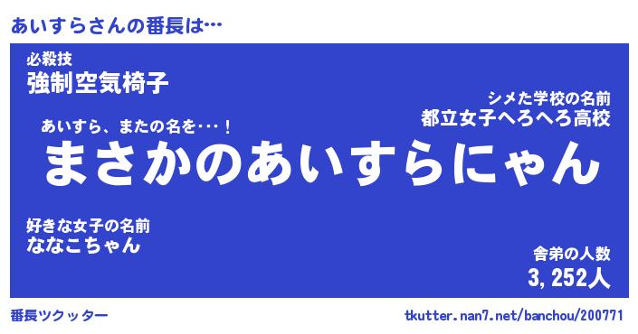 | 欧米人風あだ名 | 『マイケルあいすら』『ウサインあいすら』 |
