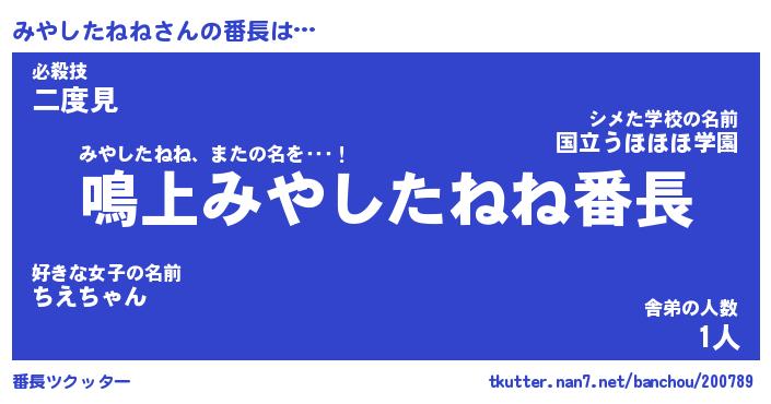 | ヘコむあだ名 | 『みやにゅー』『なまこ酢』 |