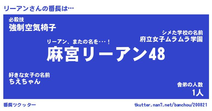 | 意味不明あだ名 | 『ペロリンリーアン』『永久保存リーアン』 |
