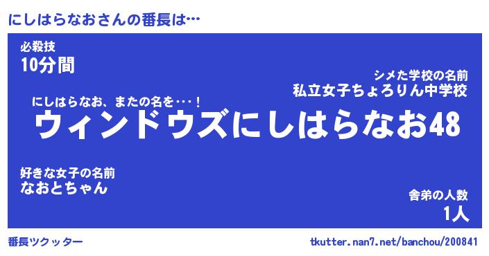 | 肩書あだ名 | 『にしはらなお社長』『にしはらなお班長』 |