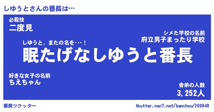 | 肩書あだ名 | 『しゆうと店長』『しゆうと国家主席』 |