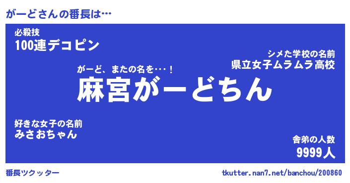 | 意味不明あだ名 | 『ペロリンがーど』『がーどフォーエバー』 |