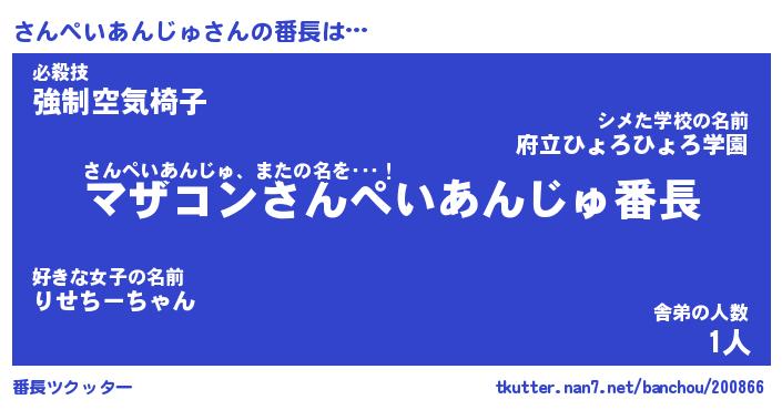 | 伝説のあだ名 | 『封印されしスナイパーさんぺいあんじゅ』 |