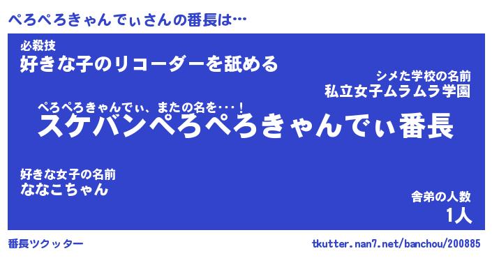 | ヘコむあだ名 | 『ぺろにー』『なまこ酢』『ぺろっぺ』 |
