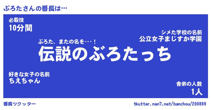 | 意味不明あだ名 | 『ペロリンぶろた』『ぶろたフォーエバー』 |