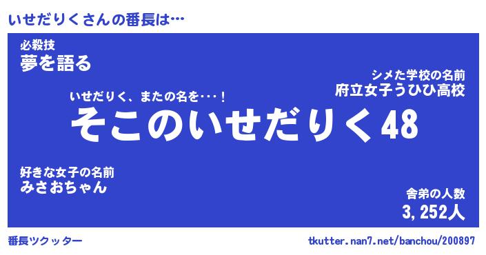 | ファンタジー風あだ名 | 『イセフェル』『エターナルイセダリクー』 |