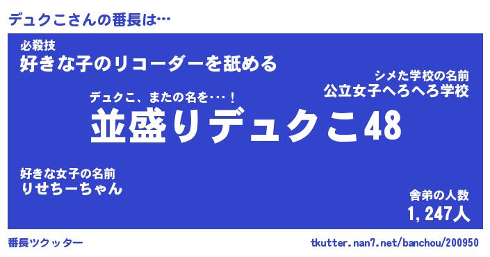 | 意味不明あだ名 | 『ペロリンデュクこ』『永久保存デュクこ』 |