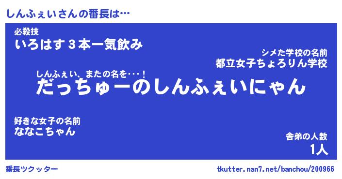 | ファンタジー風あだ名 | 『シンフェル』『エターナルシンフェイー』 |