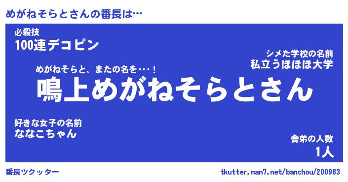 | ピコ太郎風あだ名 | 『メコ五郎』『ピメ三郎』『メガ次郎』 |