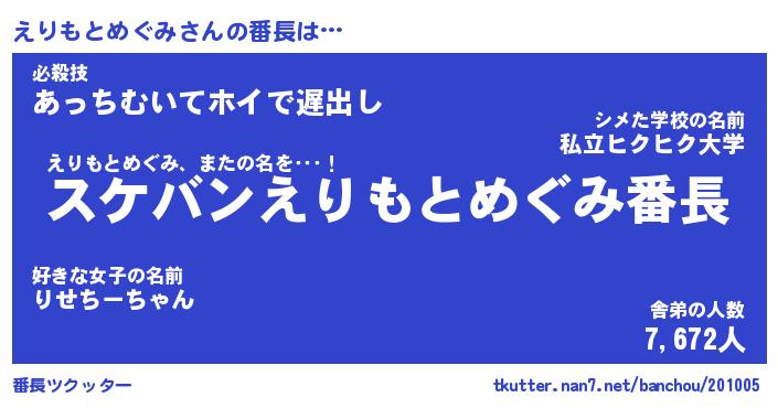 | 2回繰り返すあだ名 | 『えりえり』『ええりり』『ぬれぬれ』 |