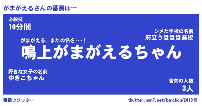 | 2回繰り返すあだ名 | 『がまがま』『ががまま』『おたおた』 |