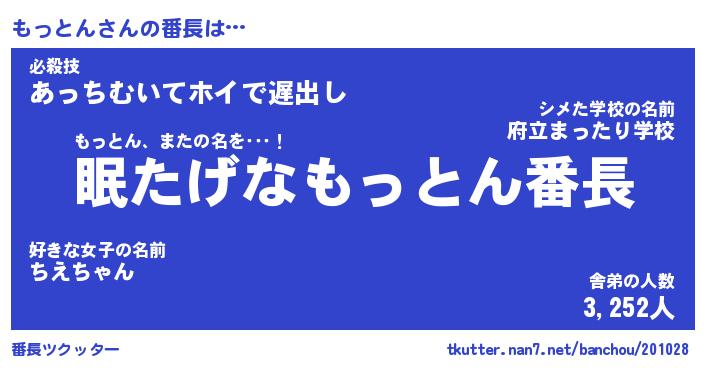 | 意味不明あだ名 | 『ペロリンもっとん』『永久保存もっとん』 |