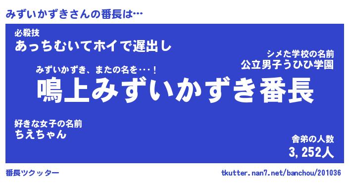| 肩書あだ名 | 『みずいかずき社長』『みずいかずき教頭』 |