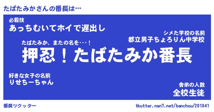| 肩書あだ名 | 『たばたみか社長令嬢』『たばたみか教頭』 |