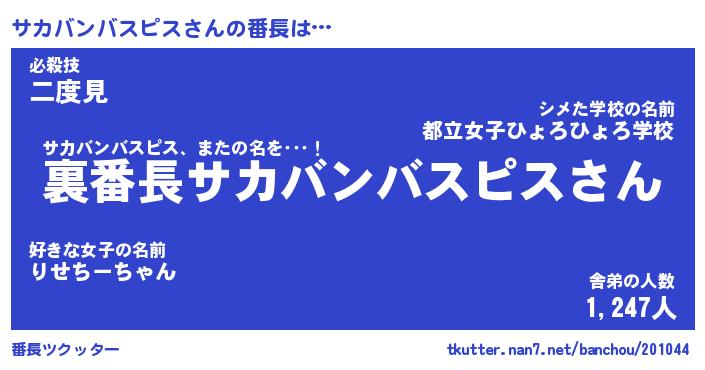 | ヒーロー風カッコイイあだ名 | 『スーパーサカバンバスピス』 |