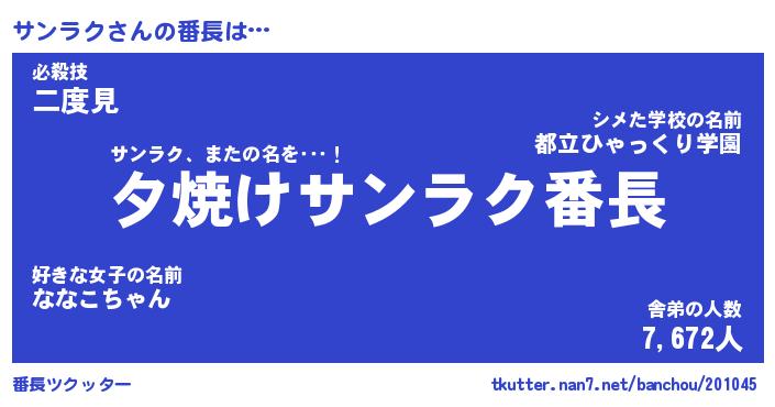 | 意味不明あだ名 | 『ペロリンサンラク』『永久保存サンラク』 |