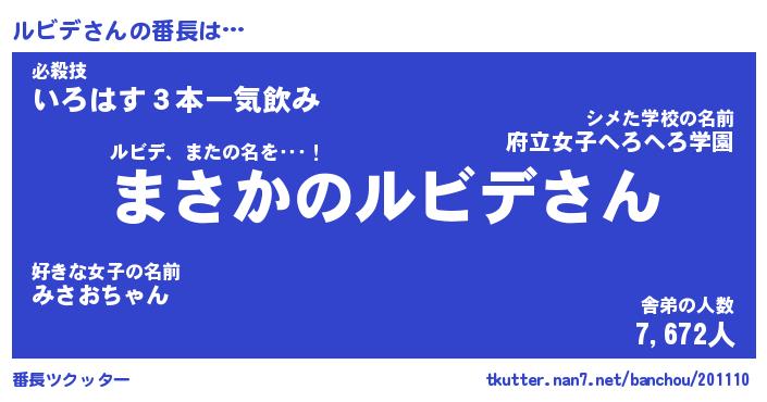 | 2回繰り返すあだ名 | 『ルビルビ』『ルルビビ』『ぬらぬら』 |