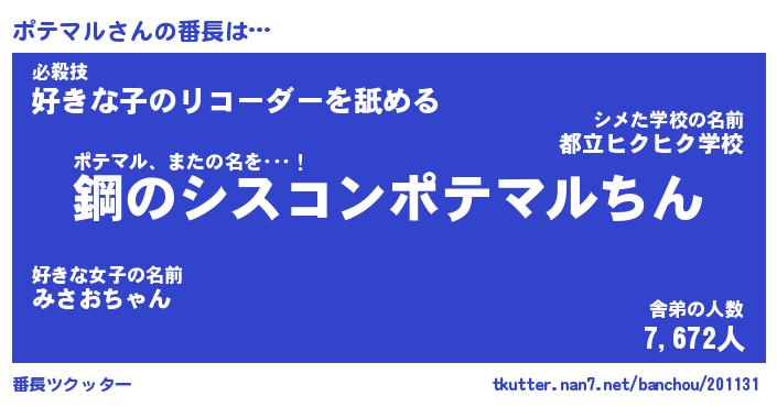 | 意味不明あだ名 | 『ペロリンポテマル』『永久保存ポテマル』 |