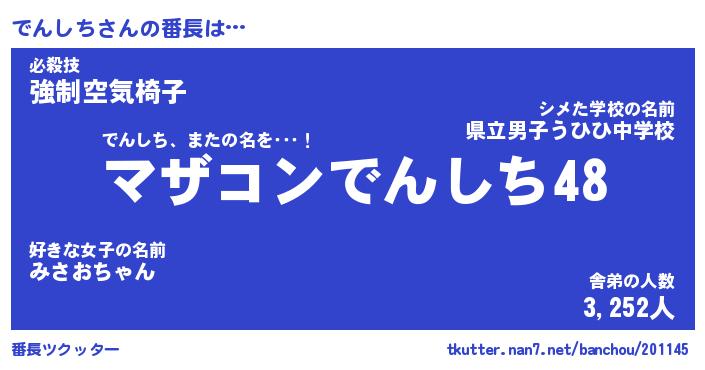 | 意味不明あだ名 | 『ペロリンでんしち』『永久保存でんしち』 |