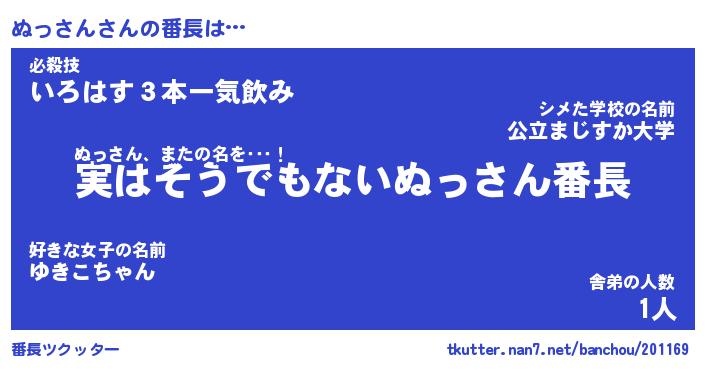 | 意味不明あだ名 | 『ペロリンぬっさん』『永久保存ぬっさん』 |
