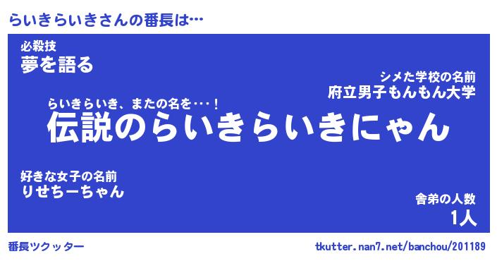 | ヘコむあだ名 | 『らいもー』『豆乳』『らいを』 |
