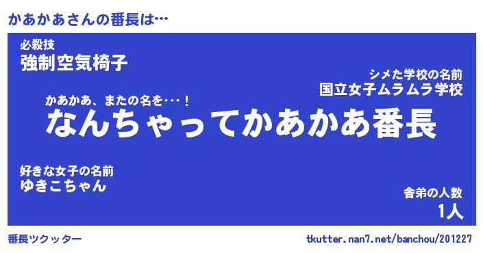 | ヘコむあだ名 | 『かあにゅー』『牛乳』『かあ太郎』 |