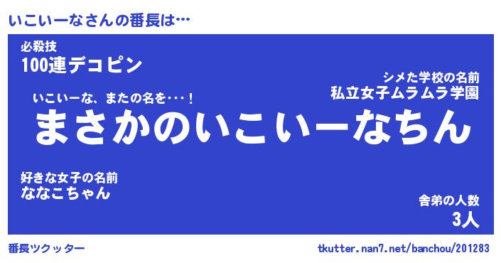 | ピコ太郎風あだ名 | 『イコ四郎』『ピイ一郎』『イコ三郎』 |