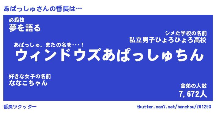 | 肩書あだ名 | 『あぱっしゅCEO』『あぱっしゅ国家主席』 |