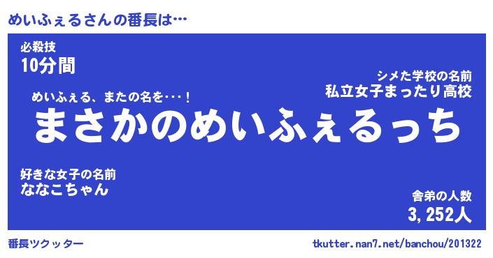 | 肩書あだ名 | 『めいふぇるCEO』『めいふぇる大統領』 |