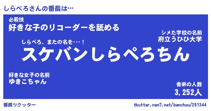 | 伝説のあだ名 | 『不死鳥のスナイパーしらぺろ』 |