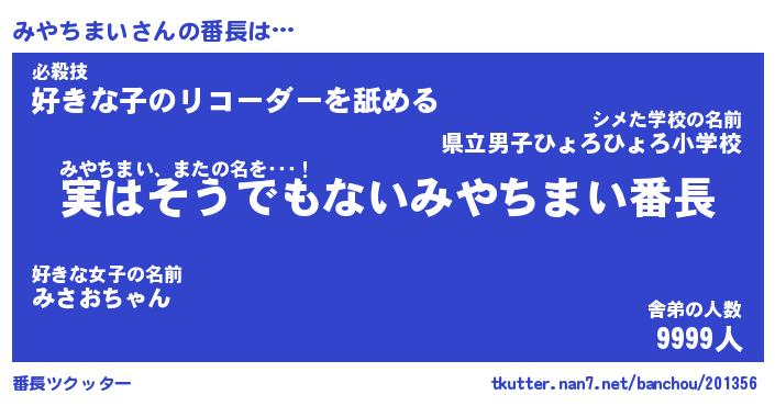 | ピコ太郎風あだ名 | 『ミコ三郎』『ピミ五郎』『ミヤ一郎』 |