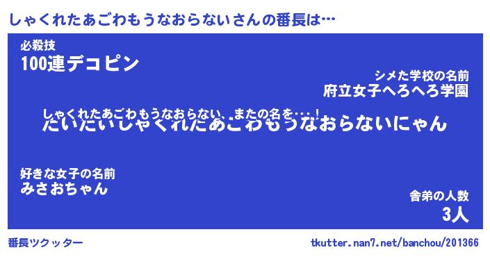 | 2回繰り返すあだ名 | 『しゃしゃ』『ししゃゃ』『おやおや』 |