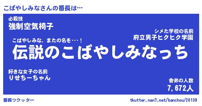 | 伝説のあだ名 | 『伝説のスナイパーこばやしみな』 |