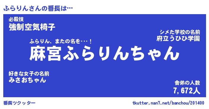 | 意味不明あだ名 | 『ペロリンふらりん』『永久保存ふらりん』 |
