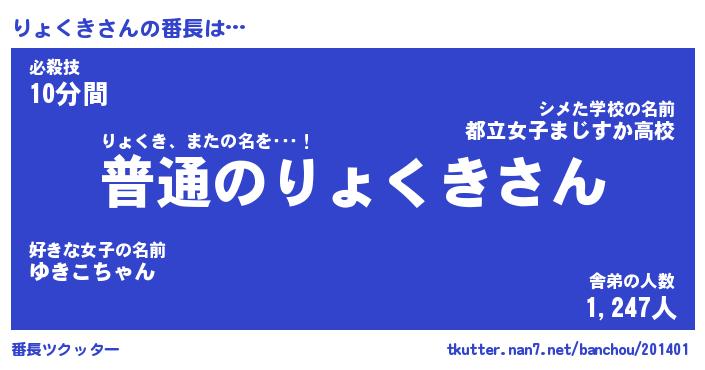 | ヒーロー風カッコイイあだ名 | 『スーパーリョクキ』『銀牙騎士リョ』 |