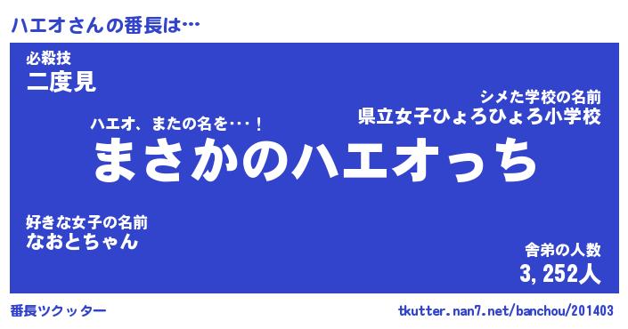 | ファンタジー風あだ名 | 『ハエフェル』『エターナルハエオー』 |