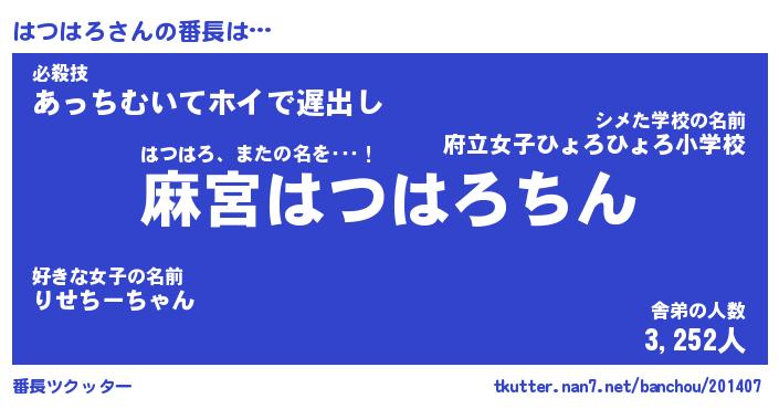 | 伝説のあだ名 | 『不死鳥のスナイパーはつはろ』 |