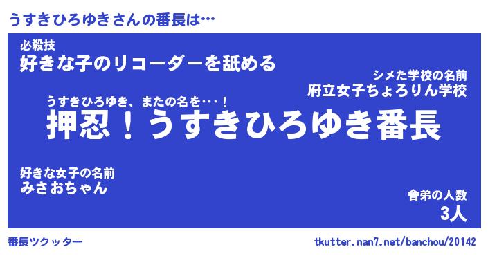 | 恥ずかしいあだ名 | 『プリティーうすきひろゆき』『うすちん』 |
