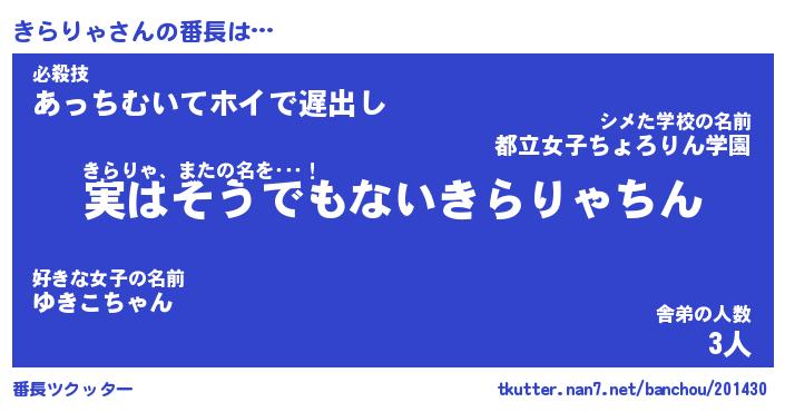 | 伝説のあだ名 | 『封印されしスナイパーきらりゃ』 |