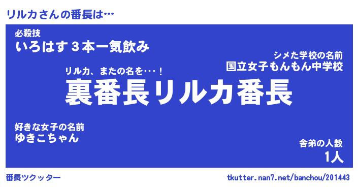 | 意味不明あだ名 | 『ペロリンリルカ』『リルカフォーエバー』 |