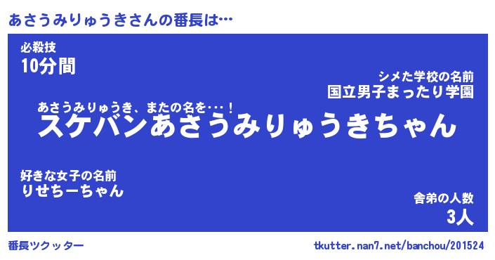 | 男性向けラノベタイトル風あだ名 | 『アサウミリュウキアートオンライン』 |