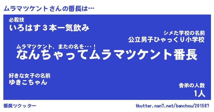 | 男性向けラノベタイトル風あだ名 | 『ムラマツケントの憂鬱』 |